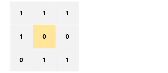 이제 완전 탐색(Brute-force)으로 맵에 있는 구멍을 찾아보겠습니다. 빈 공간인 0으로부터 시작하여, 상하좌우와 대각선 4방향을 포함한 8방향을 검사합니다.