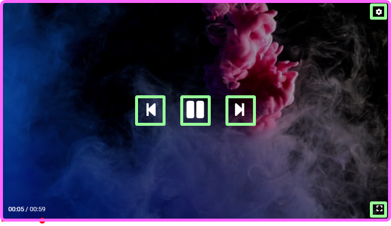 - 전체 영역(보라색) : video 화면 위에 controls를 보여주거나 숨김