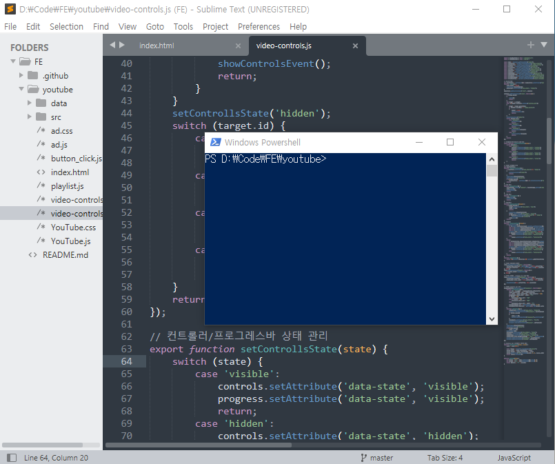 단순하면서도 개인적으로 꼭 필요하다고 생각하는 기능인 자동완성이나 화면 분할, 구문 강조, 각종 단축키 등은 기본적으로 제공되었습니다. 하지만 화면 분할의 경우 Drag & Drop방식이 아닌 단축키를 이용해야 한다는 점이 조금 아쉬웠습니다. 무엇보다도, Git을 많이 활용하는 만큼 터미널이 기본으로 제공되지 않는 점이 가장 큰 단점이었습니다.