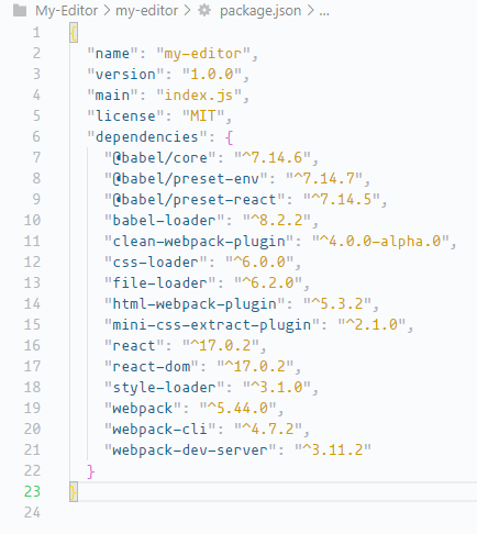간단하게 preset만 설정하고 plugin은 추가하지 않았습니다.