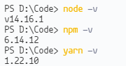 node.js, npm, yarn을 설치했습니다. 각각의 역할은 다음과 같습니다.